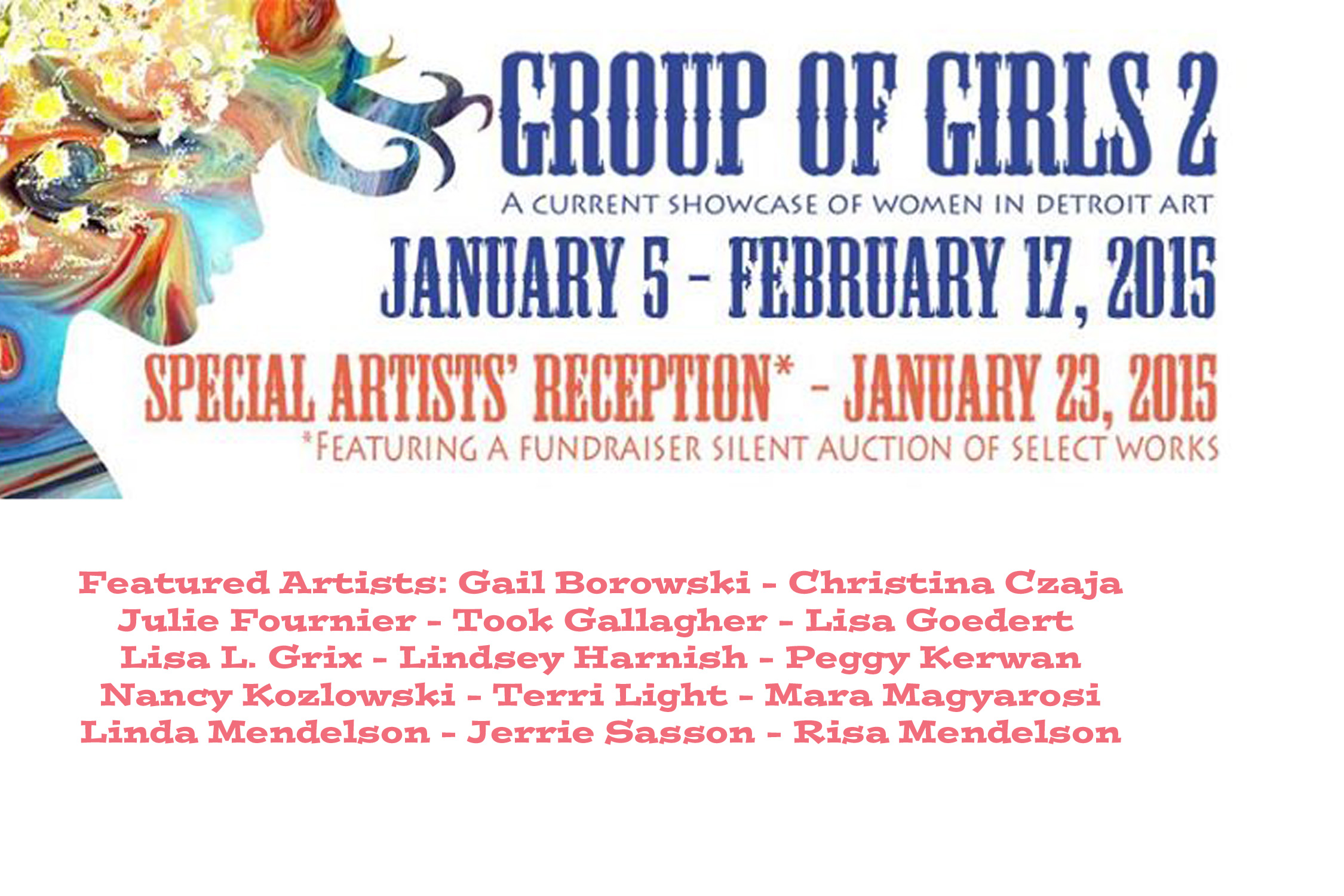 WCA members Jerrie Sasson and Linda Mendelson will be showing their work in a special group exhibition that celebrates women in the Detroit arts, as well as marking the 30th year of arts at the Woods Gallery. Show dates: January 5 – February 17 during regular Huntington Woods Public Library hours with a special meet-the-artists reception on January 23, from 6:30-9:30 p.m. A silent auction of donated art will be held during the reception to fund repairs of the Gallery after the flooding of 2014.