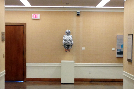 Brenda Oelbaum’s Venus of Fonda is front and center in the Toledo Museum of Art as part of the Community Challenge show People on Paper. The sculpture, which refers to the Venus of Willendorf, is made of pages from Jane Fonda’s diet books. In a witty side note, she also sports Fonda’s trademark legwarmers. She levitates above a pedestal and is prominently installed at the end of a long gallery where she can be seen both far away and close up. People on Paper will be on view until May 7. For more information about the show and about the Community Challenge program at the Toledo Museum of Art, go to: