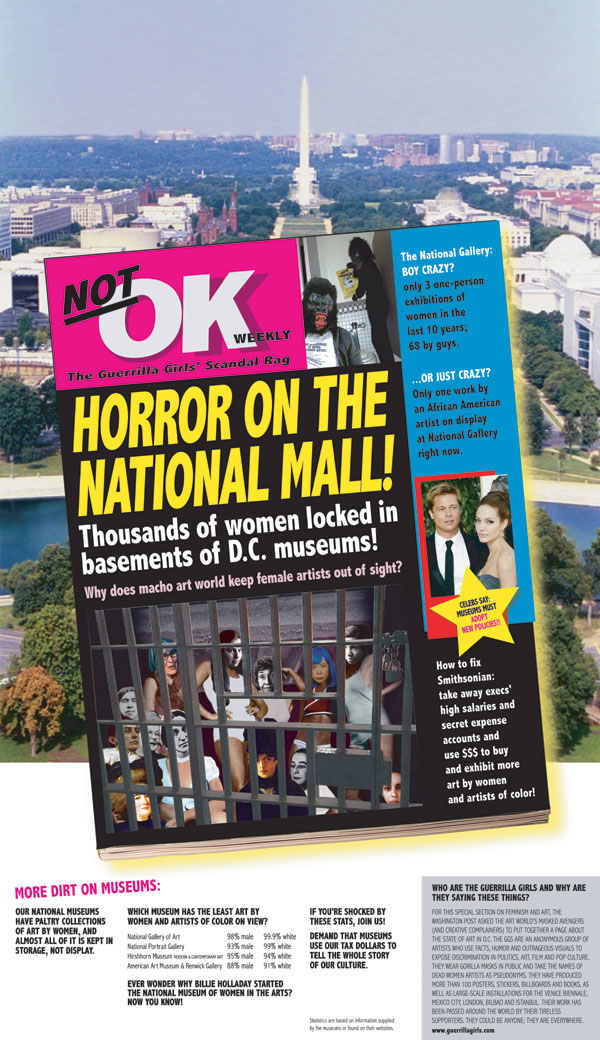 Brenda Oelbaum attended a presentation at the Women’s Caucus for Art conference in New York. Susan Fisher Sterling, Director of the National Museum of Women in the Arts, informed the audience about the current state of women artists in the art world. Above is poster created by the Guerilla Girls to reveal how the sad truth about how few women artists are represented in national museums. Below are some stunning statistics for women artist’s representation in U.S. They aren’t as great as we had hoped.